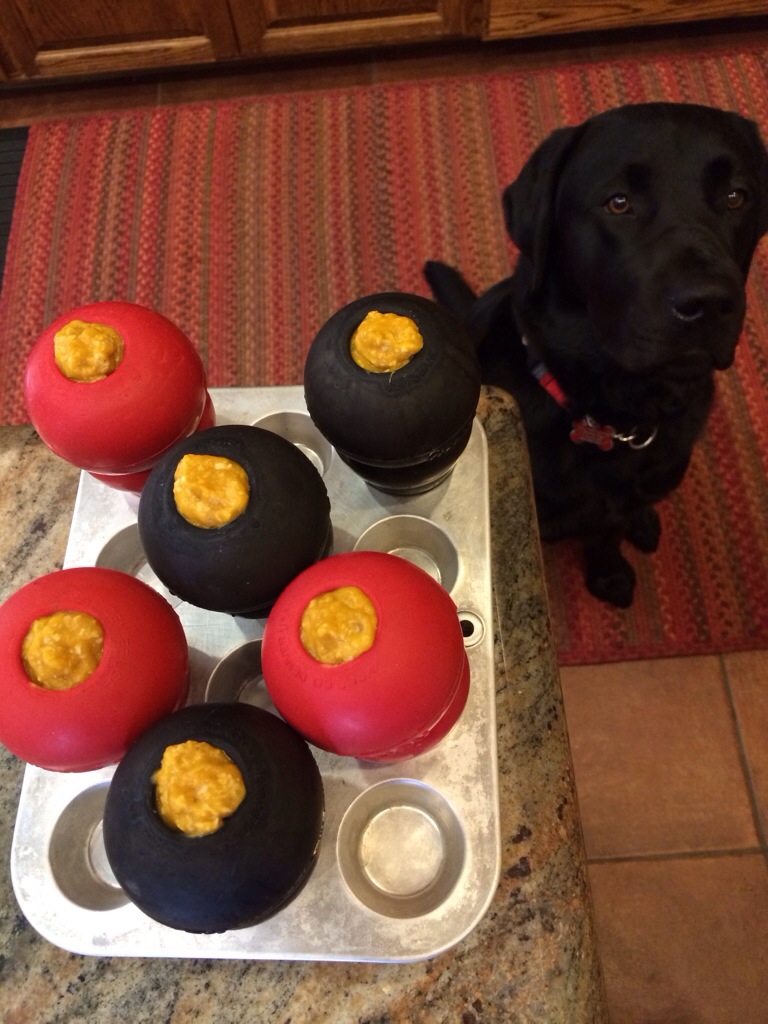 The mom decided today to make me some frozen KONGS. Thank god Beth and Mo and Carol at EAC taught her how to make these. (Beth’s are still better though). I kinda like food. Well, not kinda, like omg I love food. So anyways, back to the KONGS. These are those rubber toys that have holes in them so the humans can put in treats. Well, I get something better than those nasty store bought treats. I get a mixture of oatmeal (Irish steel cut only of course), organic pumpkin, and banana. All that gets piped into the middle and the the whole thing gets frozen. The humans give me these things sometimes during their dinner time. I am starting to realize that the more I alert them during dinner the more often I get one. Don’t tell them I figured that out though. Whatever, they probably would still give them to me anyways. They love me that much.