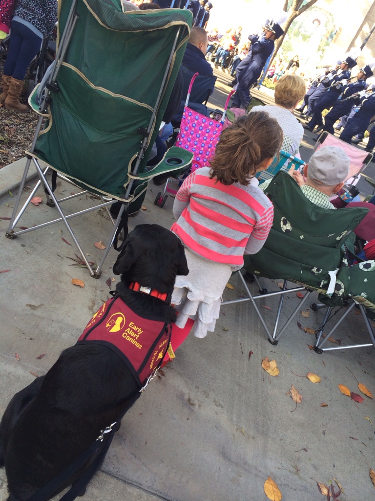 So I got to stand behind the girl for 3 hours, yes folks, three hours, while the parade went on and on and on. AND the girls mom must have screwed something up at breakfast because the girl kept going high. I think I alerted 20 times in those 3 hours. That’s hard work folks. I have to lift like my entire paw off the ground. Whatever. No one understands.