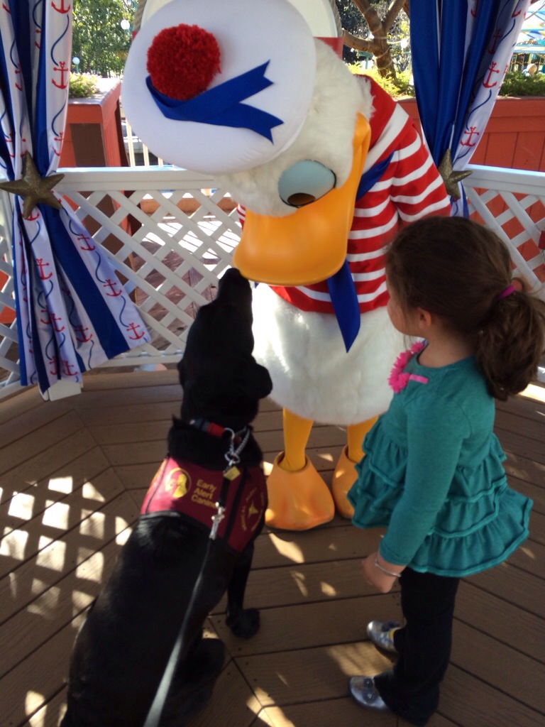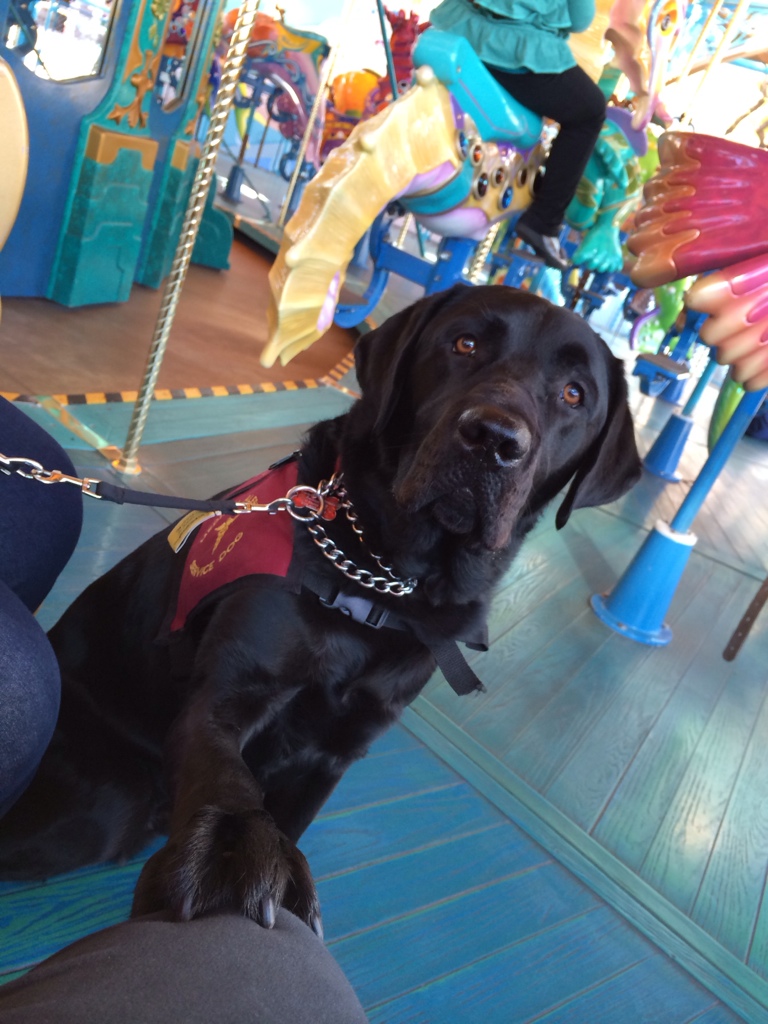 Anyways, immediately when we got to California Adventure I alerted ON the carousel that the girl was too high…just slightly out of range….but still, out of range enough to get me some Cheerios. Score. I was underwhelmed by the carousel. I mean, it just went around in circles. Maybe next time I should ride one of the animals? Or better yet maybe the grandpa can just stay with me. Yeah. That’s better. I’m not a ride kind of dog. My life is excitement enough. I mean, just look at this amazing alerting!