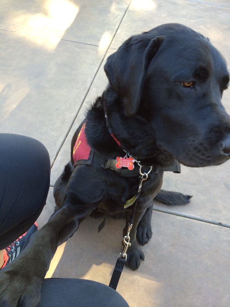 The girl sat down for lunch and I smelled she was just out of range so I alerted the mom. Sure enough she had dropped just below 80. The mom gave the girl half a banana to eat while they waited for lunch to arrive. Under normal circumstances, (is there such a thing with type one diabetes?) the half banana would have brought the girls BG way up. The parents assumed that but I knew differently. I could smell she was still dropping. I pawed again. They assumed she had gone really high. Not so! The parents just keep patting my head saying “good boy” in a really condescending way but they weren’t doing anything for the girl so I knew I had to do something drastic. Something obnoxious. Something awesome. When the mom told me to settle down under the table I stood my ground and refused to move. Like totally froze.