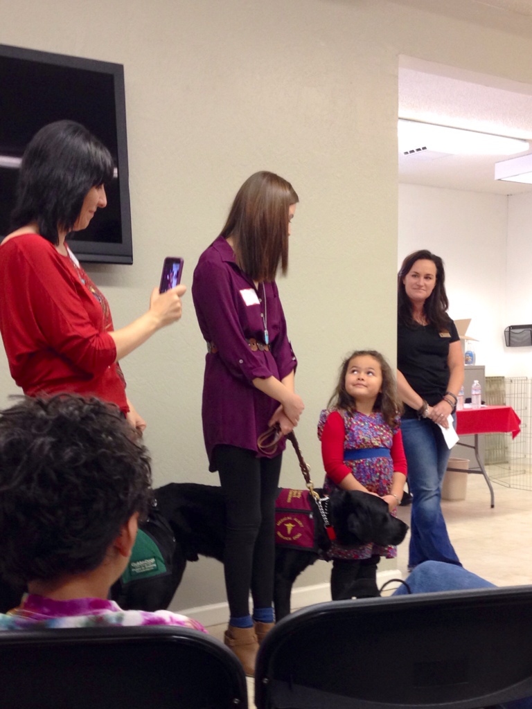 Anyways, my family showed up the training center and I knew I was somewhere awesome.  I was excited even before we parked.  We walked into the center and almost straight away….I saw my puppy raisers!  They came all the way from Arizona to see me and the girl graduate, and I’m so happy they did.  20140126-173350.jpg