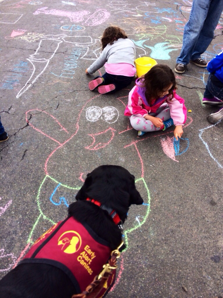 After the show the girl and the mom got to walk around with their friends. The Iris festival had a lot of things to do. First, chalk drawings. The girl wanted to draw me. Always.