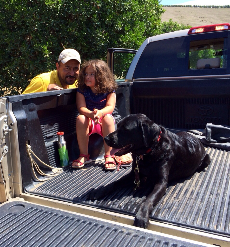 The dad wanted to show the mom and the girl all the new growth at the ranch, and they brought me along. Next time, leave me at home. Please. I would rather be in a Prius. Air conditioned. Comfortable. Cushy. But since that obviously didn’t happen, I decided to sit on the mom’s lap. She’s comfortable. She’s cushy. (yikes, don’t tell her that, she might not appreciate that comment. Whatever, you can tell her. I’m ok with that.) She’s not as comfy as the inside of a car, but as always, I’m forced to improvise and make the best of any situation. Plus it was kinda torture to her.
