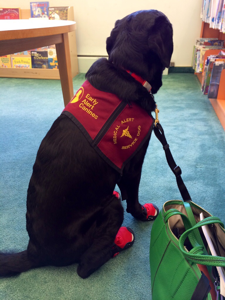 The mom had to have me wear my boots the other day. It was super hot outside. And we had to go pick up the girl at the local library. So here I am. In the library, in my boots. And people kept pointing at me and saying how cute I looked with my “little red boots”. People, these things are not fun. I’m a dog. I shouldn’t need these darn things. Whatever, I know the mom just wants to make sure I’m safe and my paws don’t get burned. So thank you mom for that. However, I suppose she could just carry me everywhere. Yeah. Why doesn’t she just do that? I mean, I’m only 75 lbs. Then I wouldn’t have to worry about a boot coming off when I alert. Right!