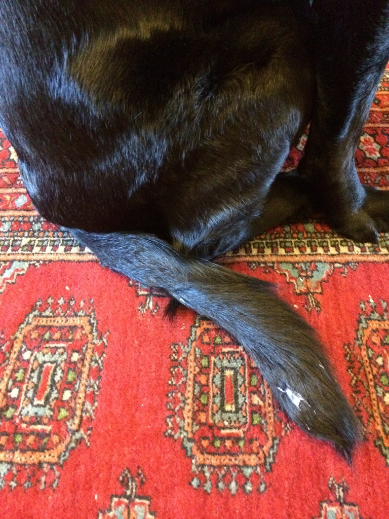 Well Darwin, There is a bright side to having gun in you tail if “the mom” uses peanut butter to remove it! YUM!