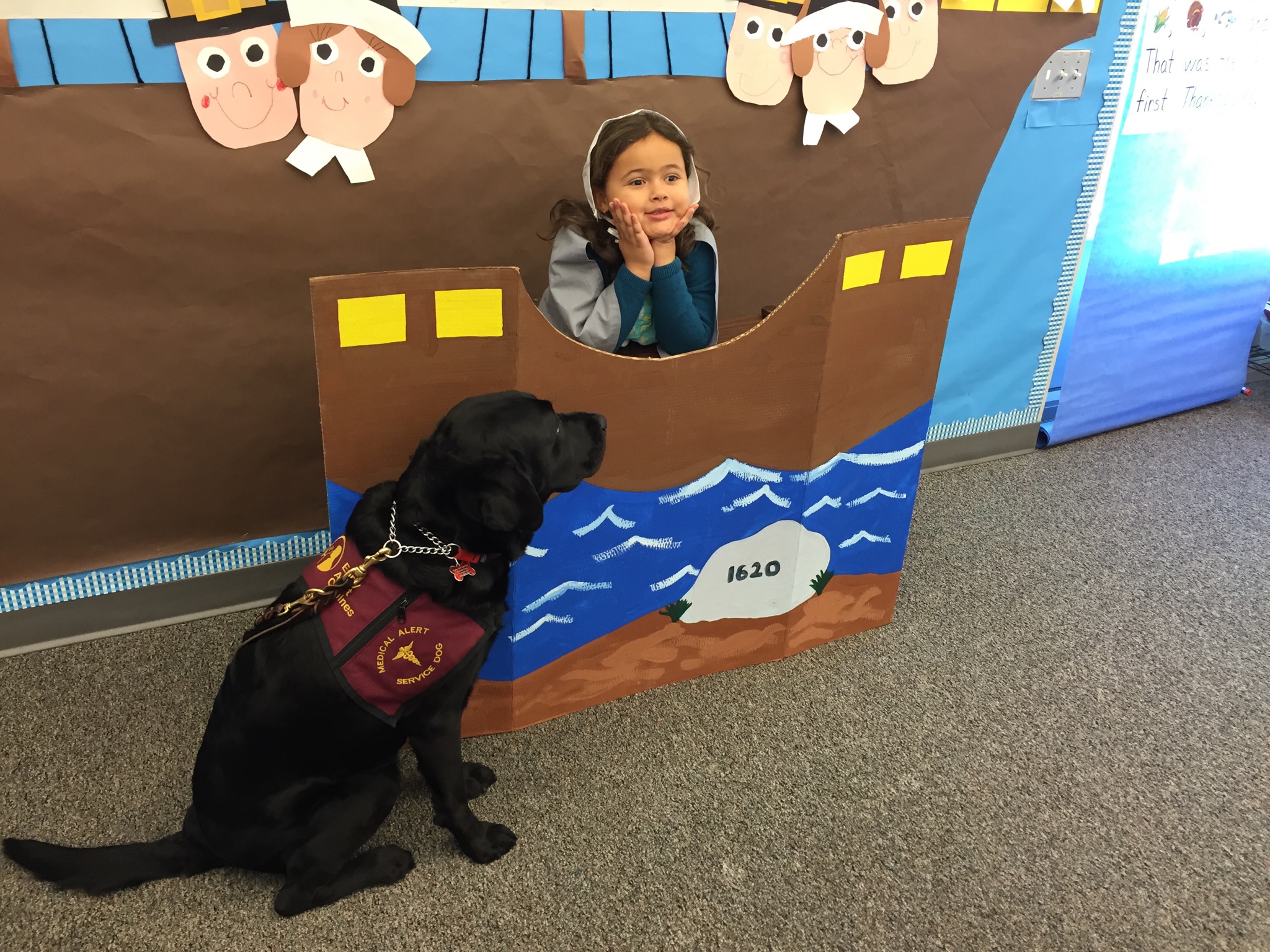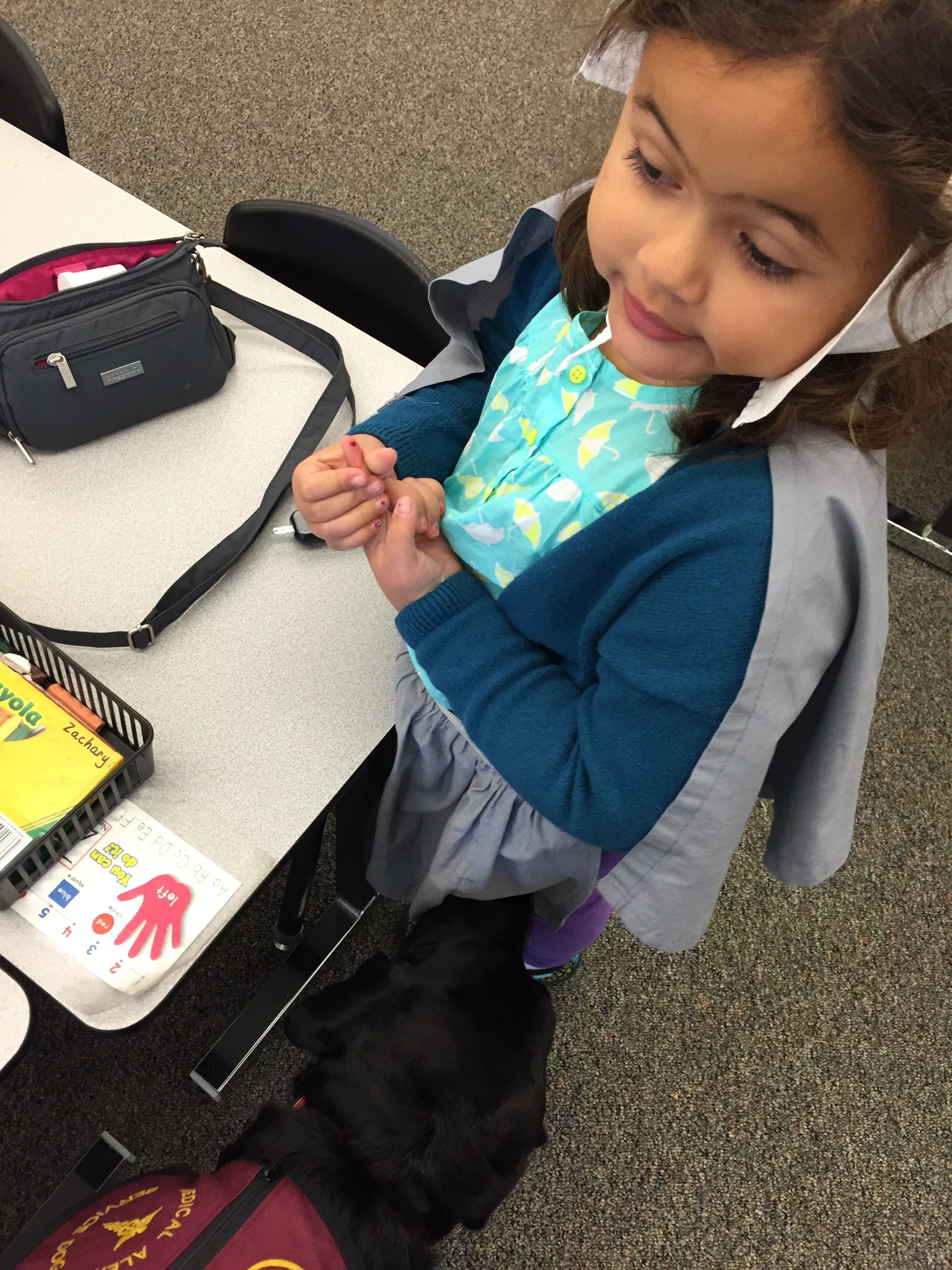Here I am at the girl’s Thanksgiving class party. Can you tell I’m amused that the girl was dressed as a Pilgram? Yeah, not so much. She was high….so I pawed the girl. Then I pawed the mom. Then I pawed the teacher.