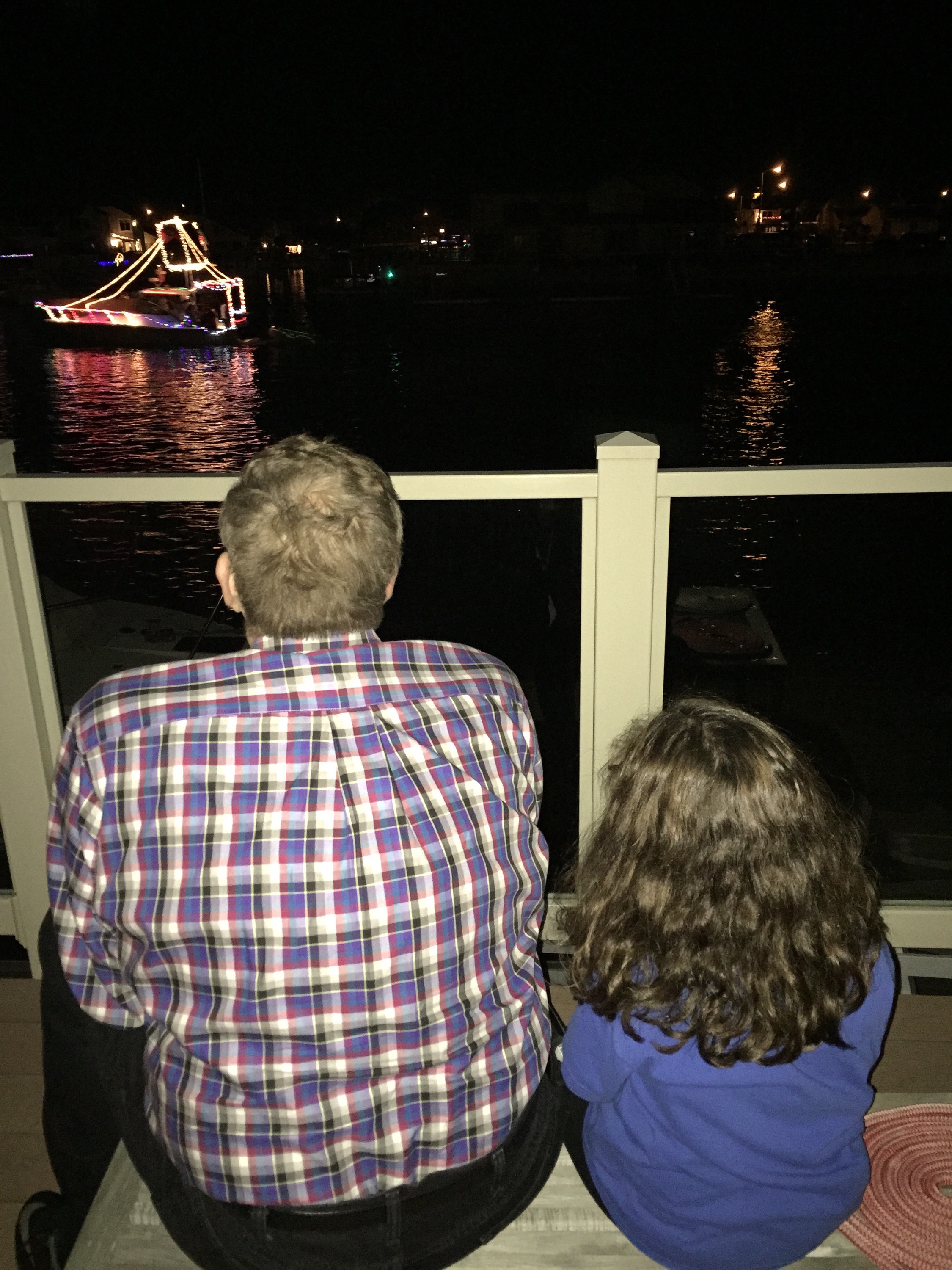 Here’s the girl and the grandpa watching the Christmas boat parade. Sweet, right? Yeah, literally. The girls blood sugar was high.