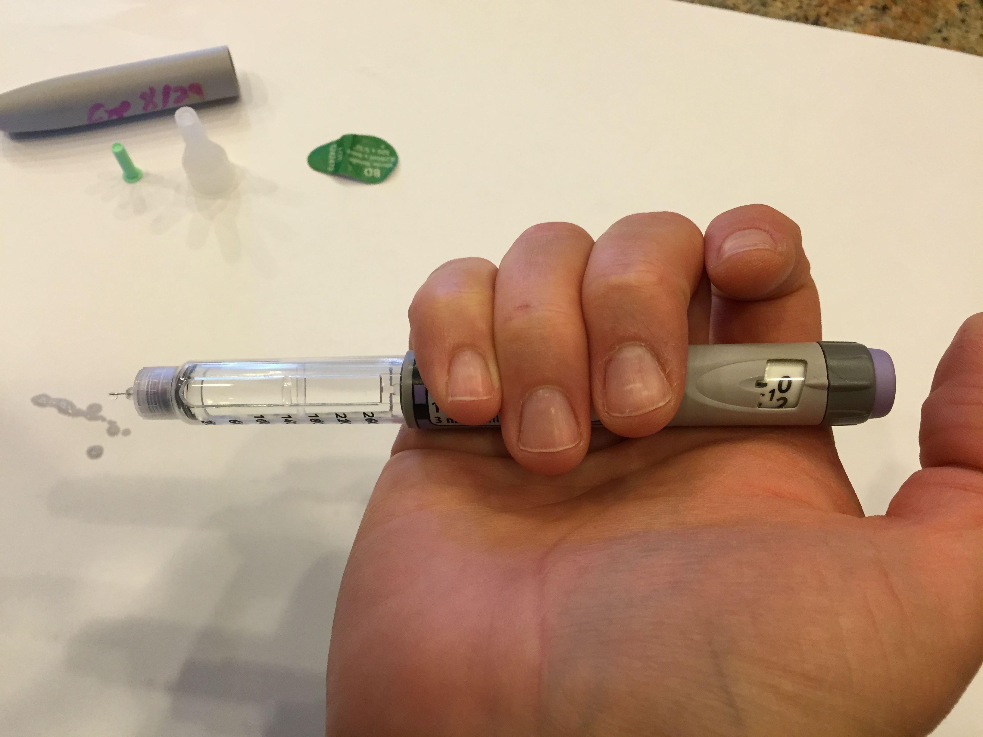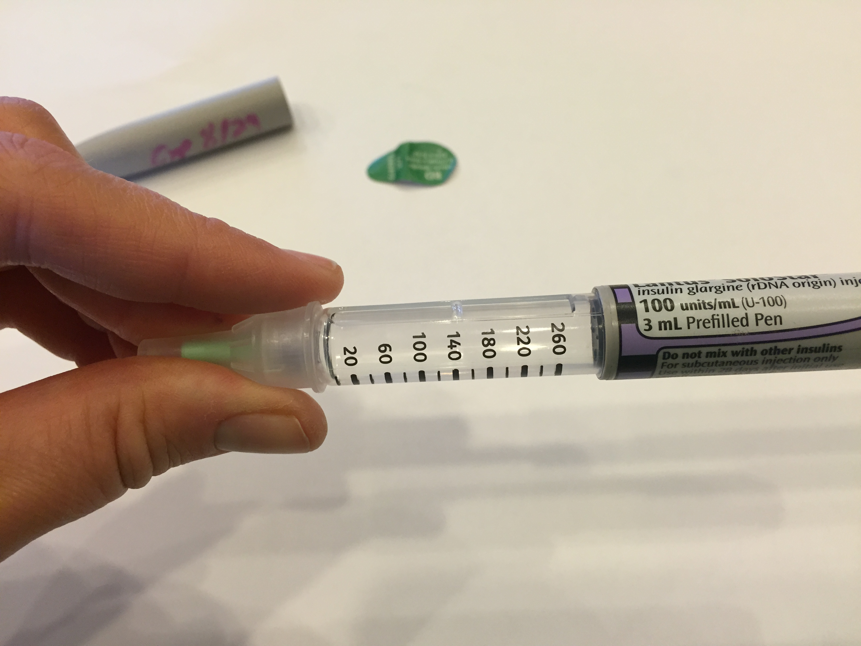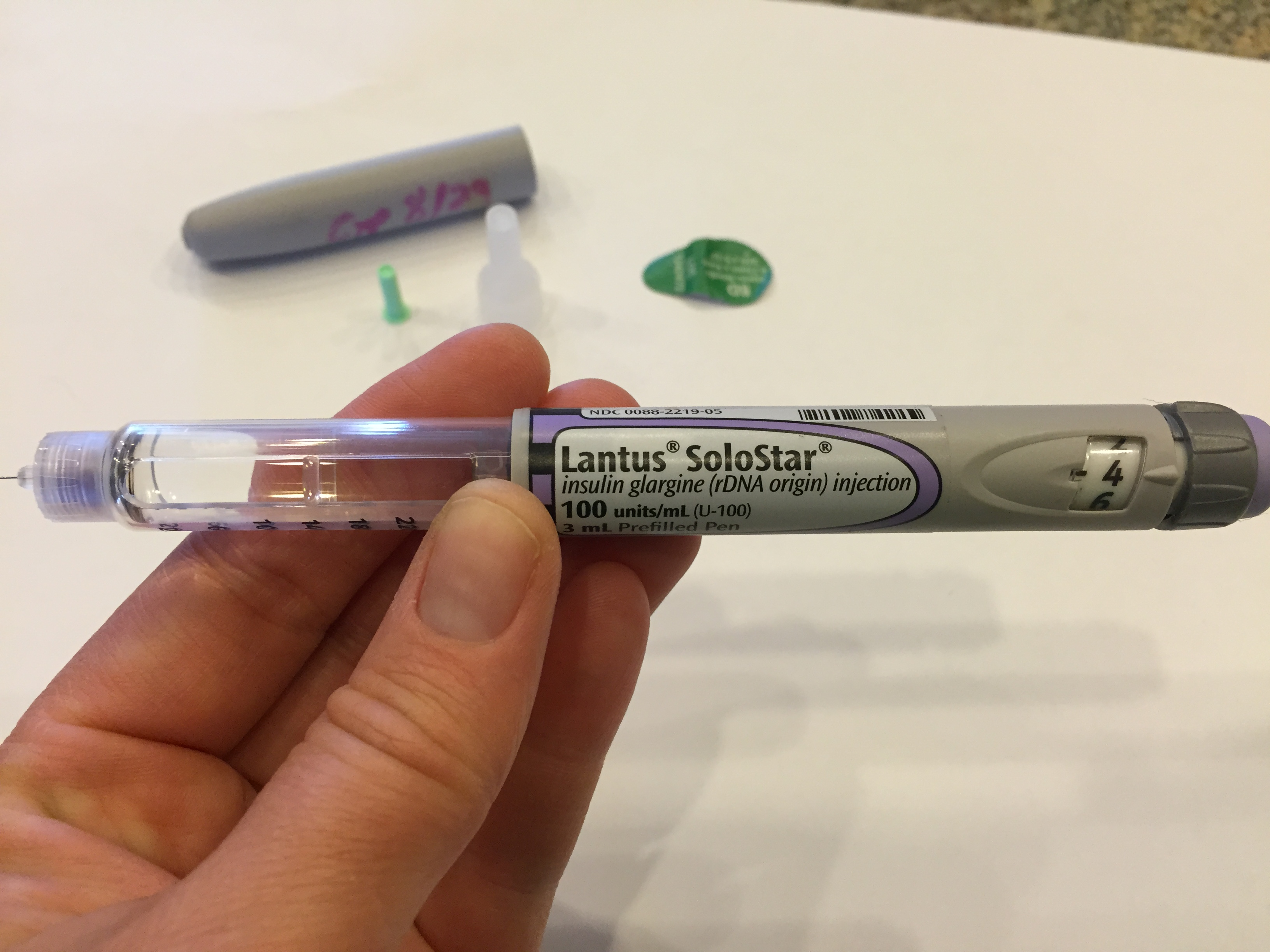 How to administer long lasting insulin via pen needle. This long lasting insulin would give the type 1 diabetic the insulin they need throughout the day. This would not cover any carbohydrates eaten, unless excess was given.